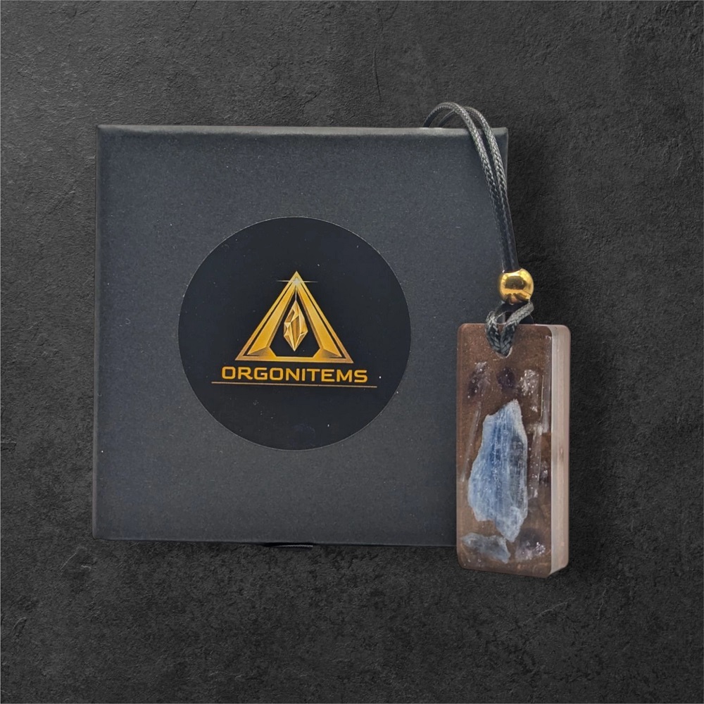 Ormusite Plus Stones/Crystals: A beautifully textured Orgonite piece. This pendant is made using Ken's Rohla Ormusite as the main material blended with Blue Kyanite blades, Amethyst Crystals chips, Selenite and Quartz.